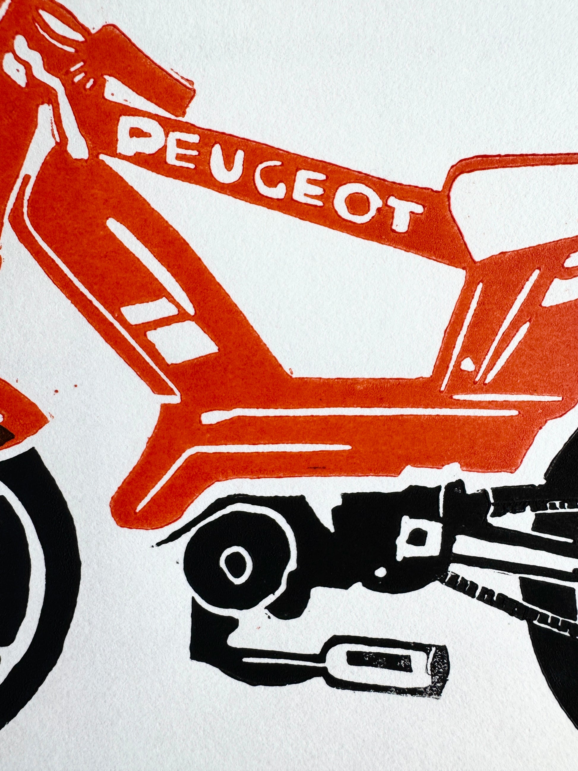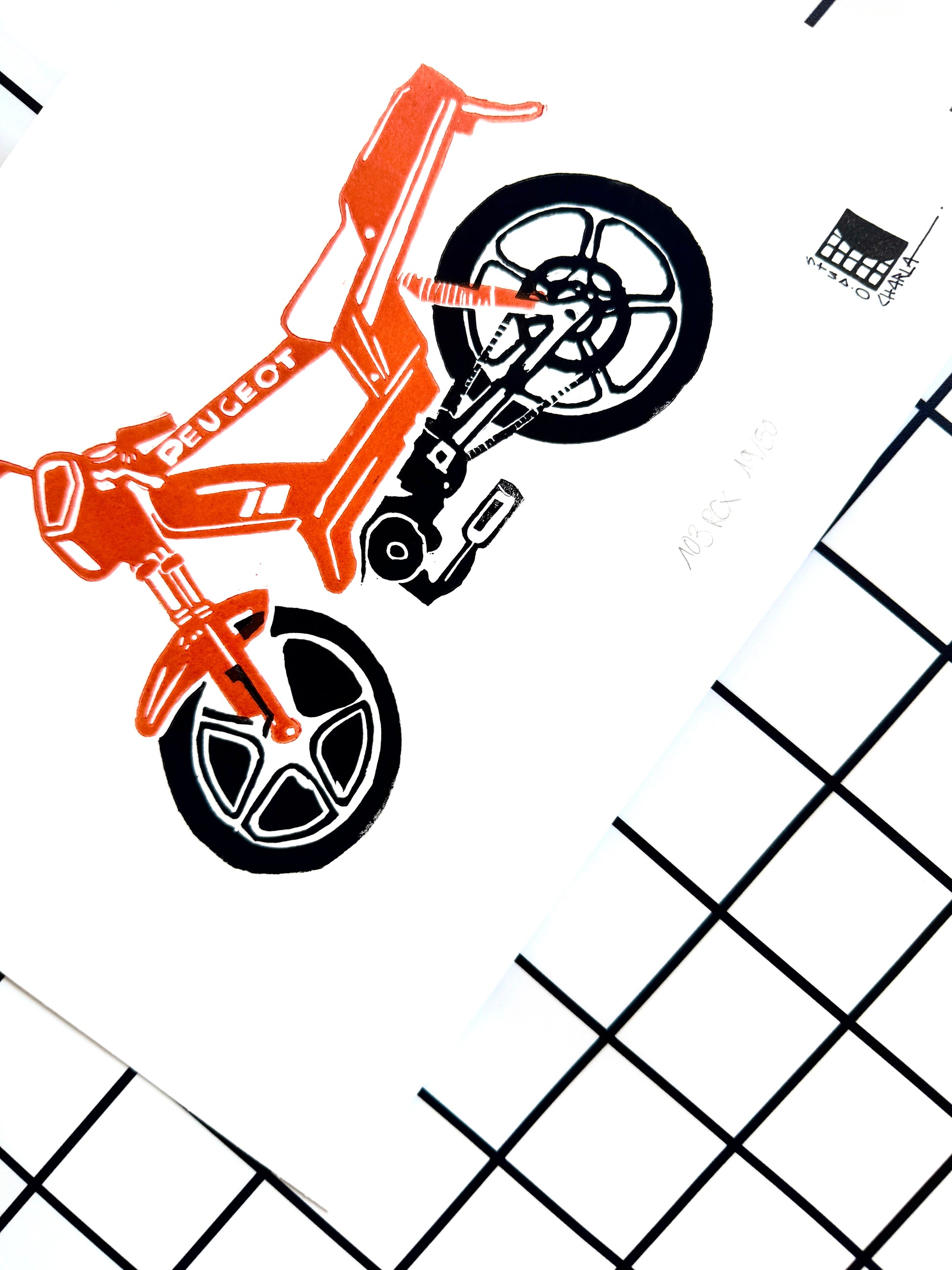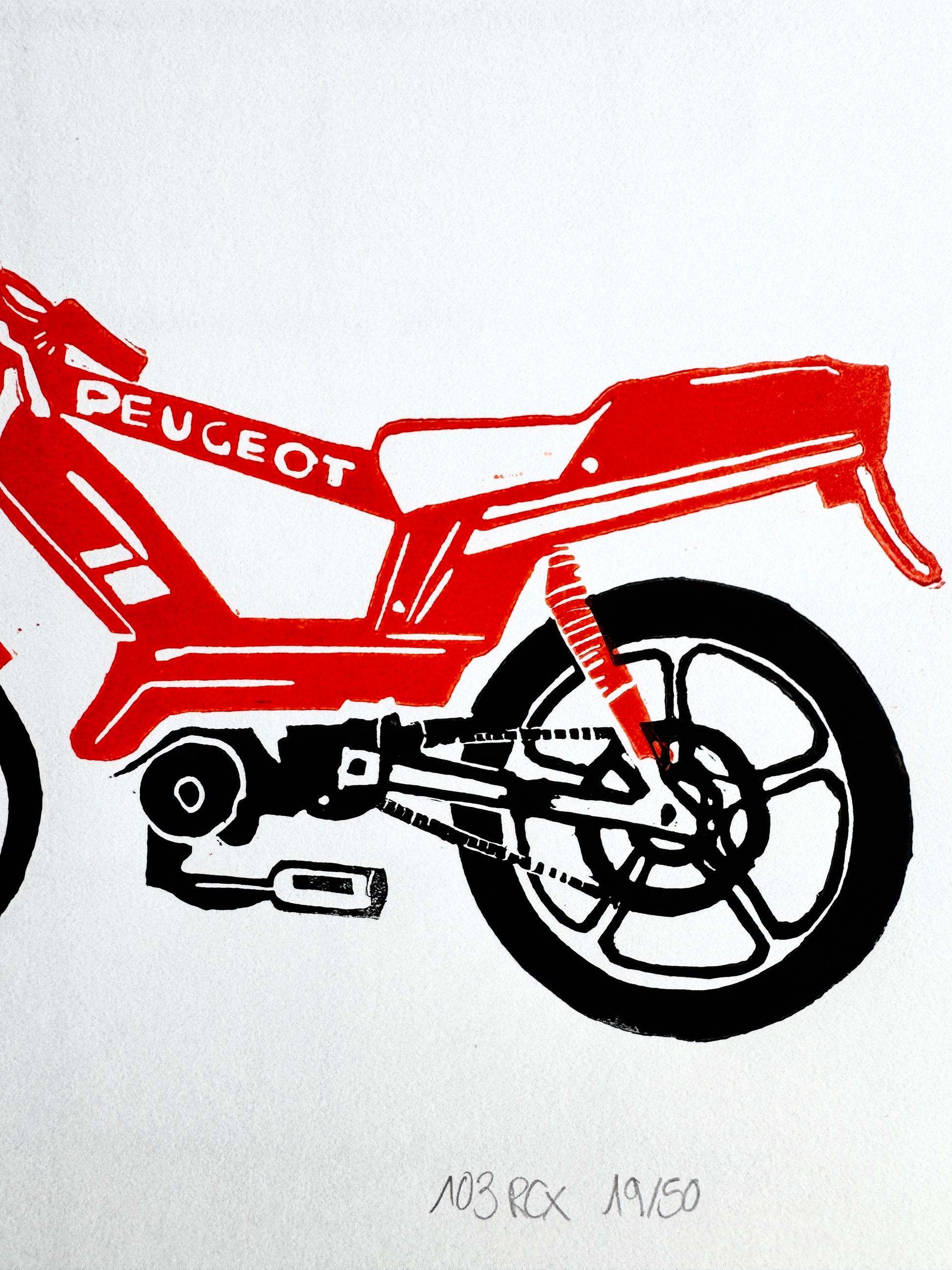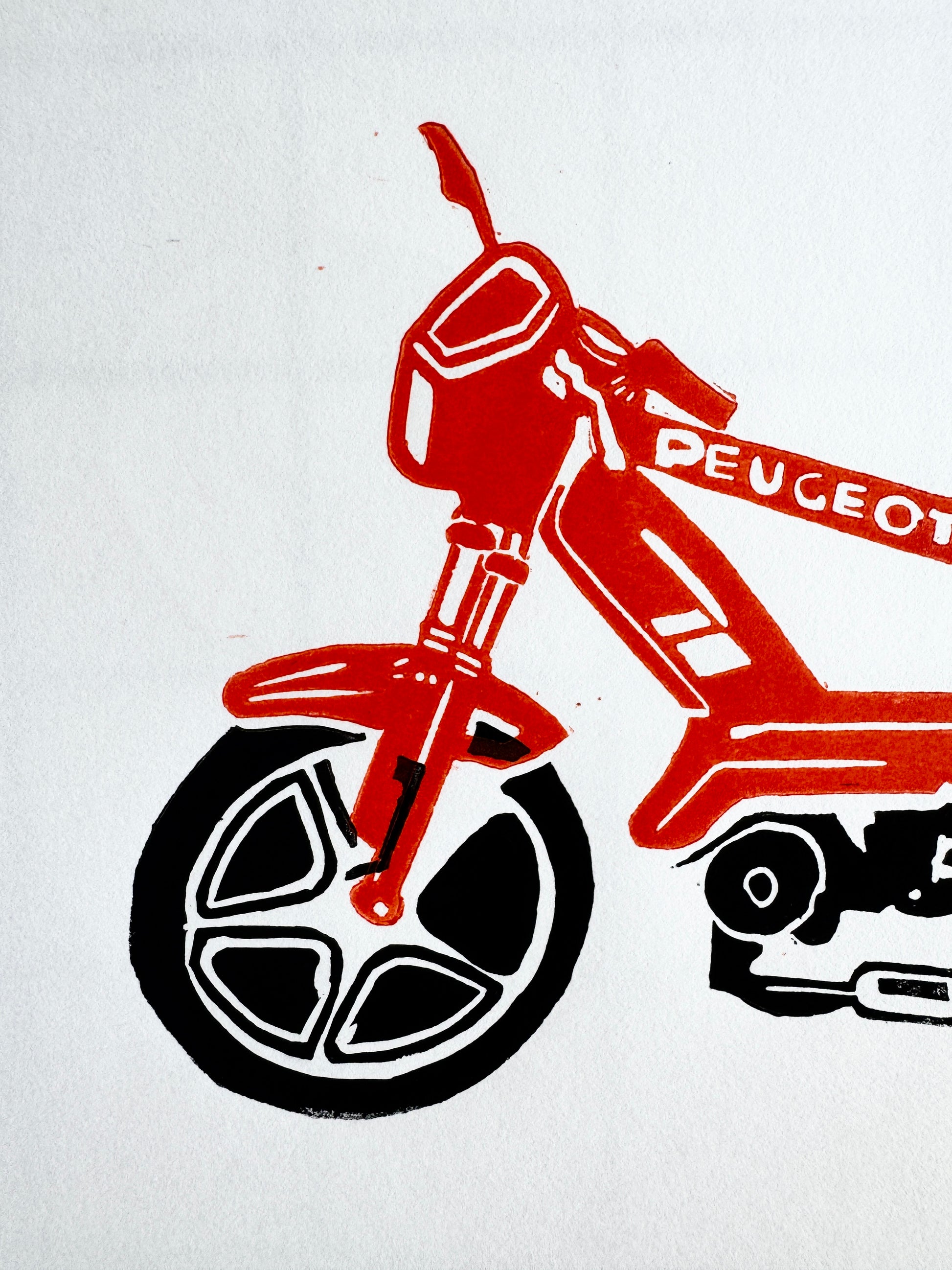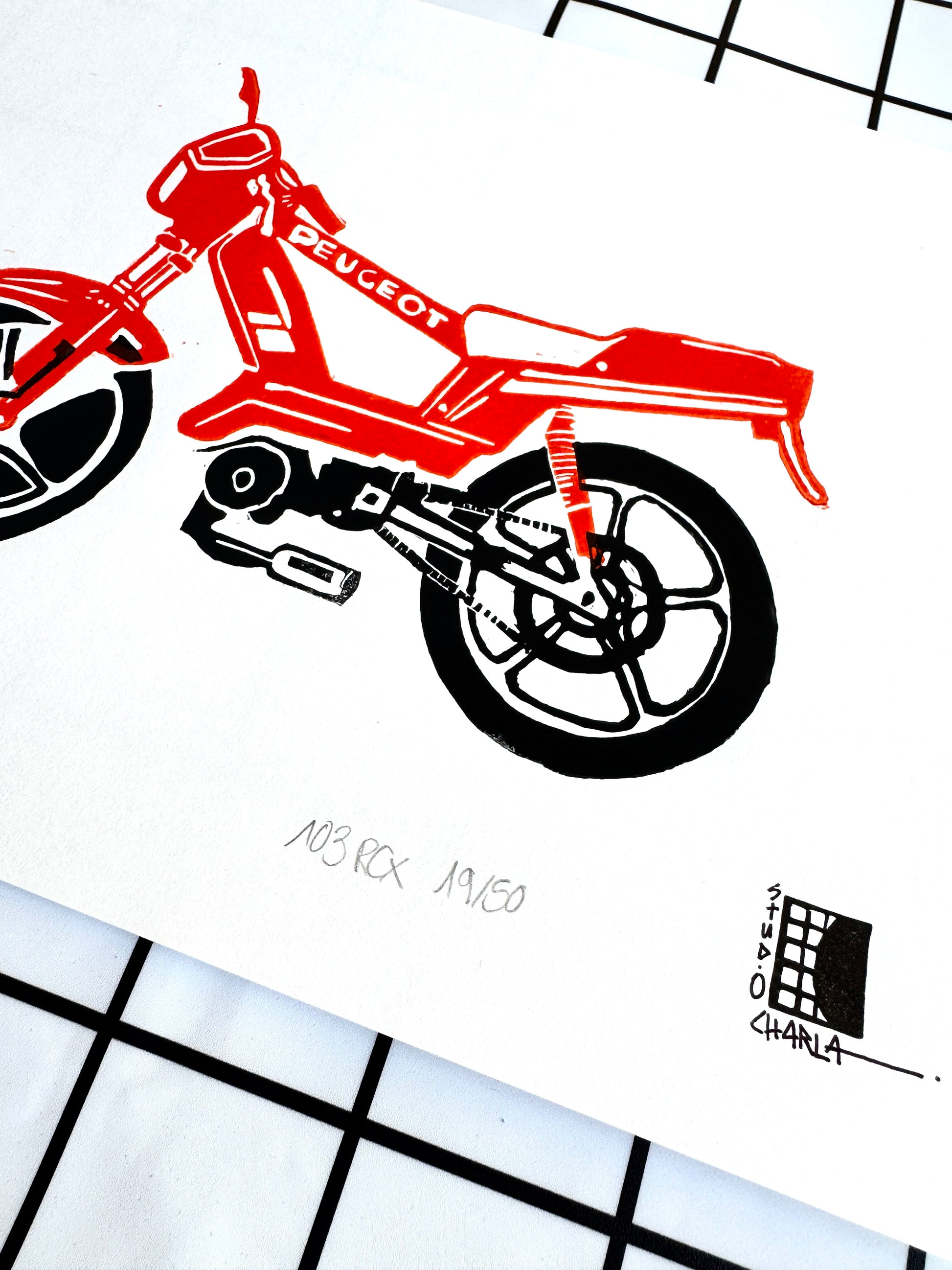 Linogravure, encres noire et rouge sur papier lavis, A4 21 sur 29.7cm