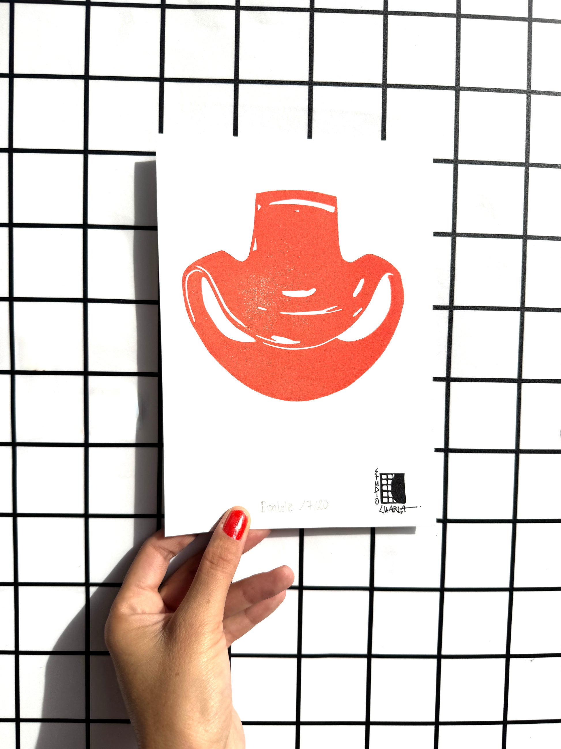 Nous imprimons nos linogravures manuellement à l’aide d’une presse. Cette technique révèle les imperfections naturelles, ces petites variations qui rendent chaque tirage unique et inimitable, loin de la déco de masse et sa production industrielle.