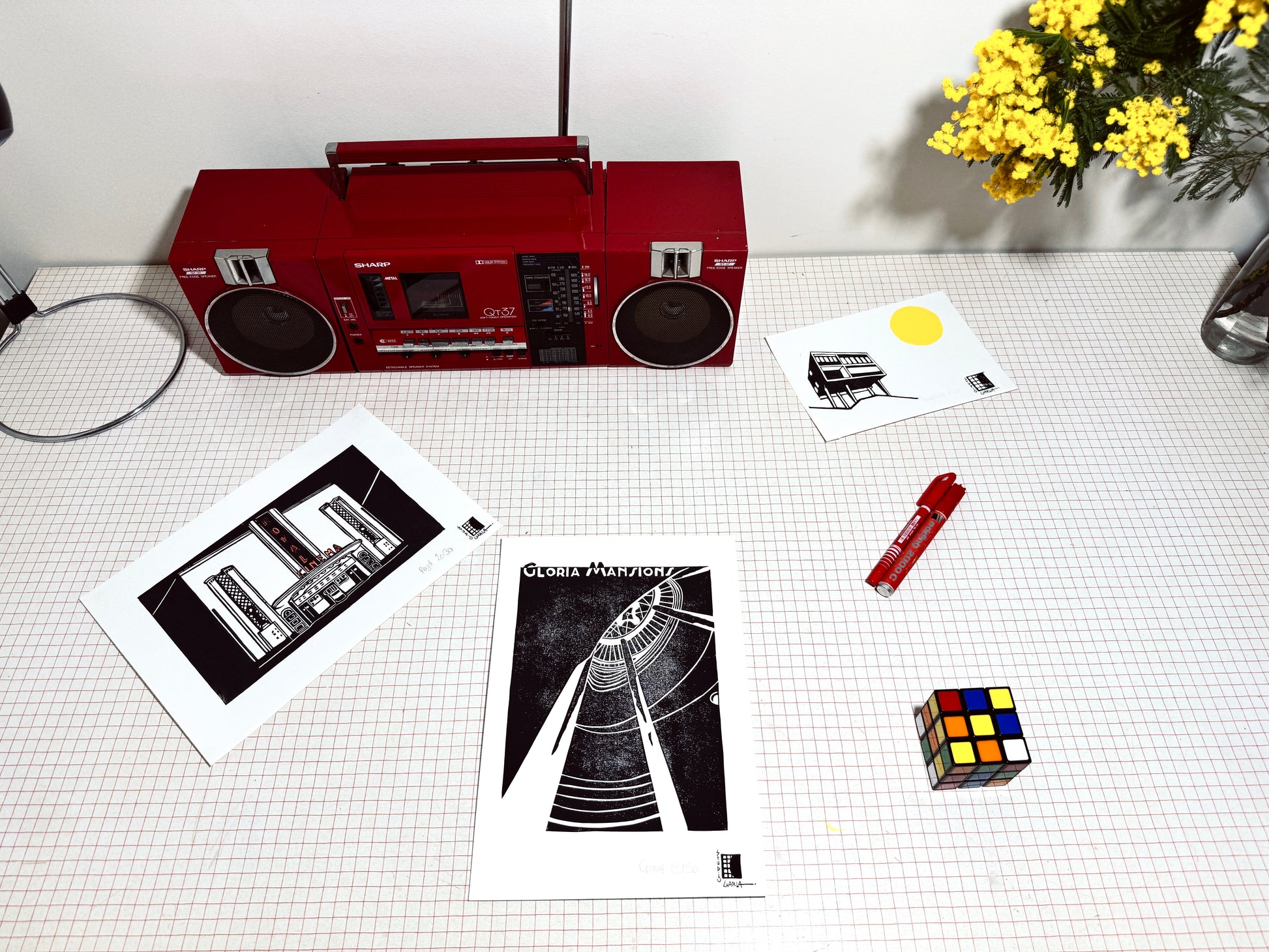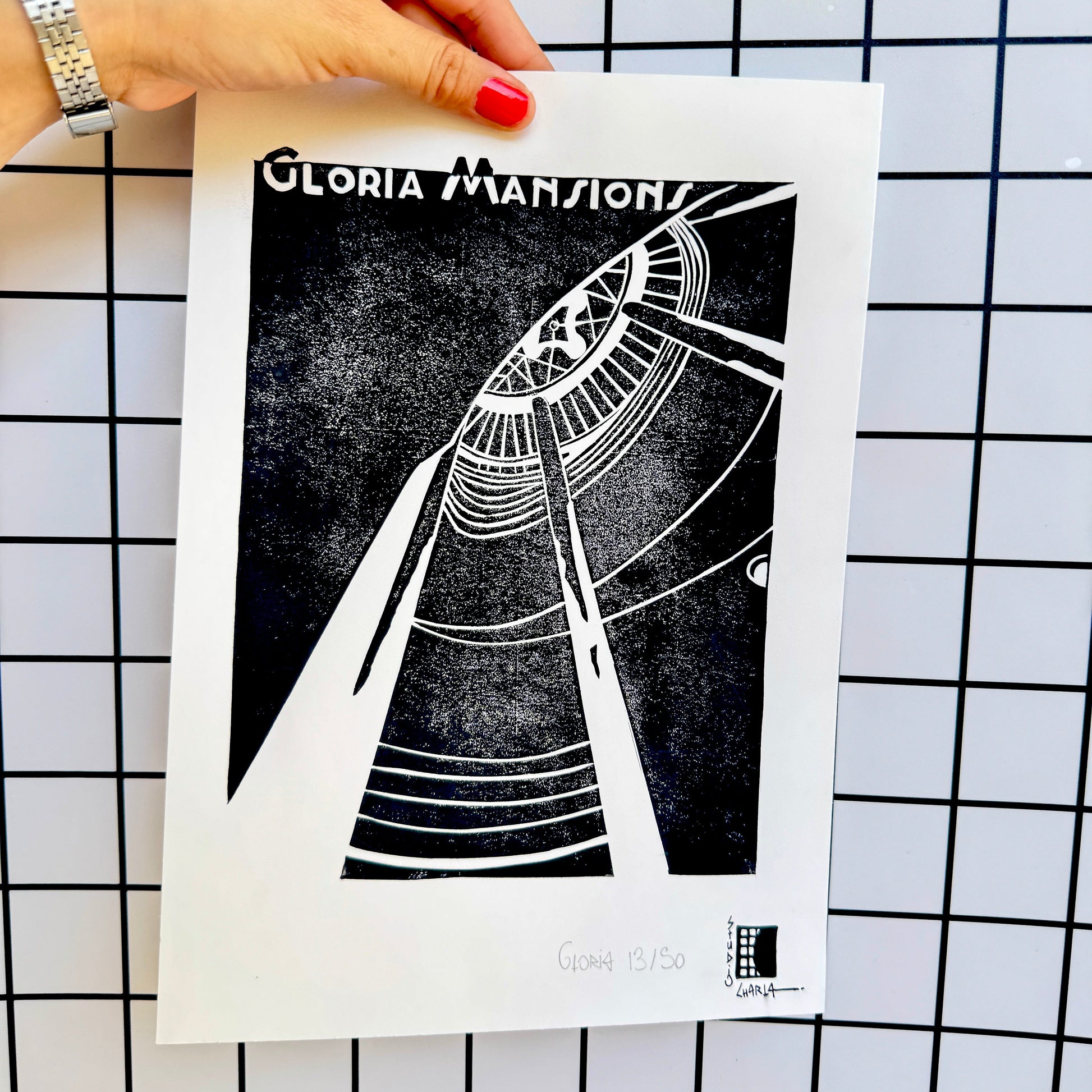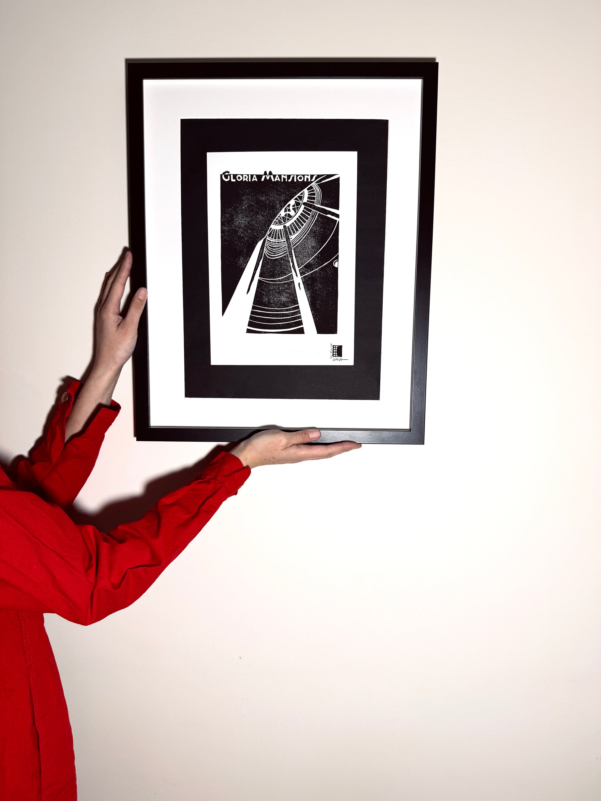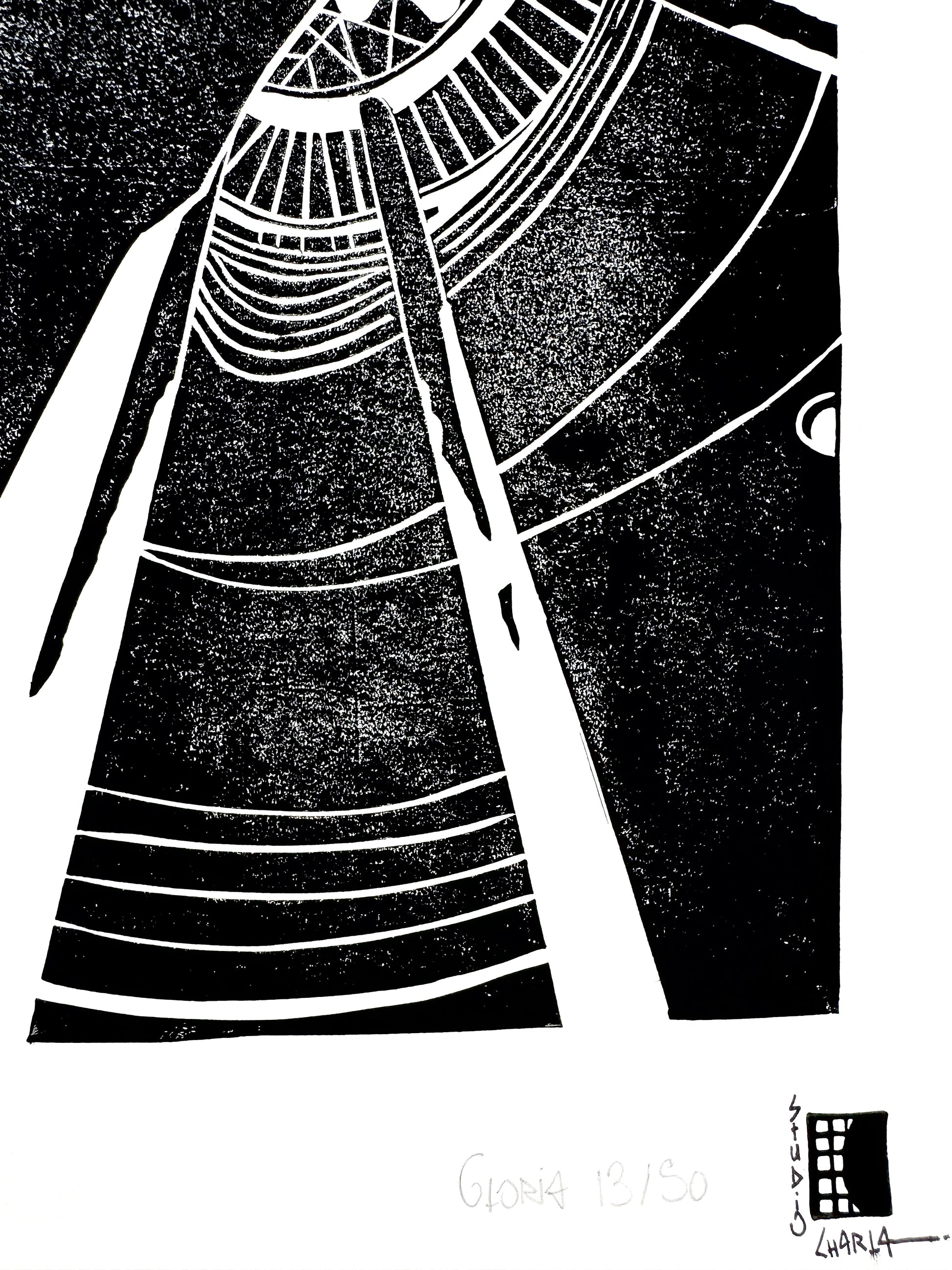 Linogravure, encre noire sur papier lavis, A4 21 sur 29,7cm