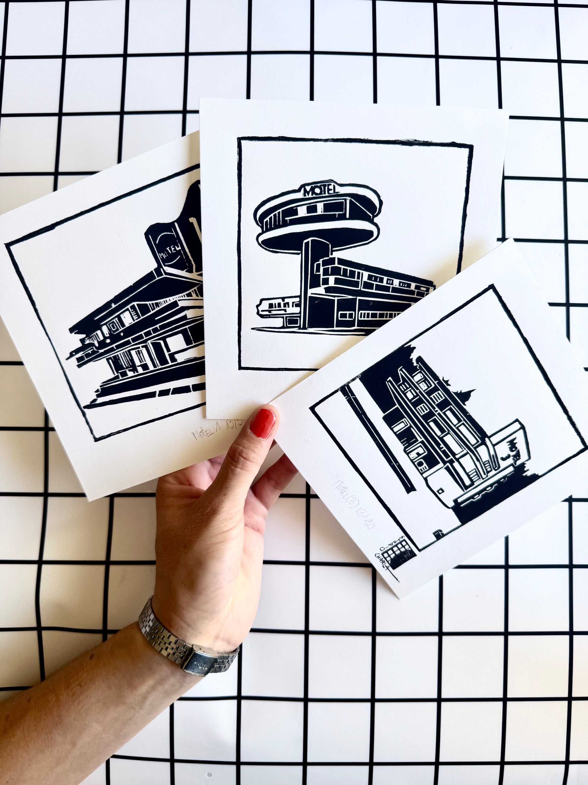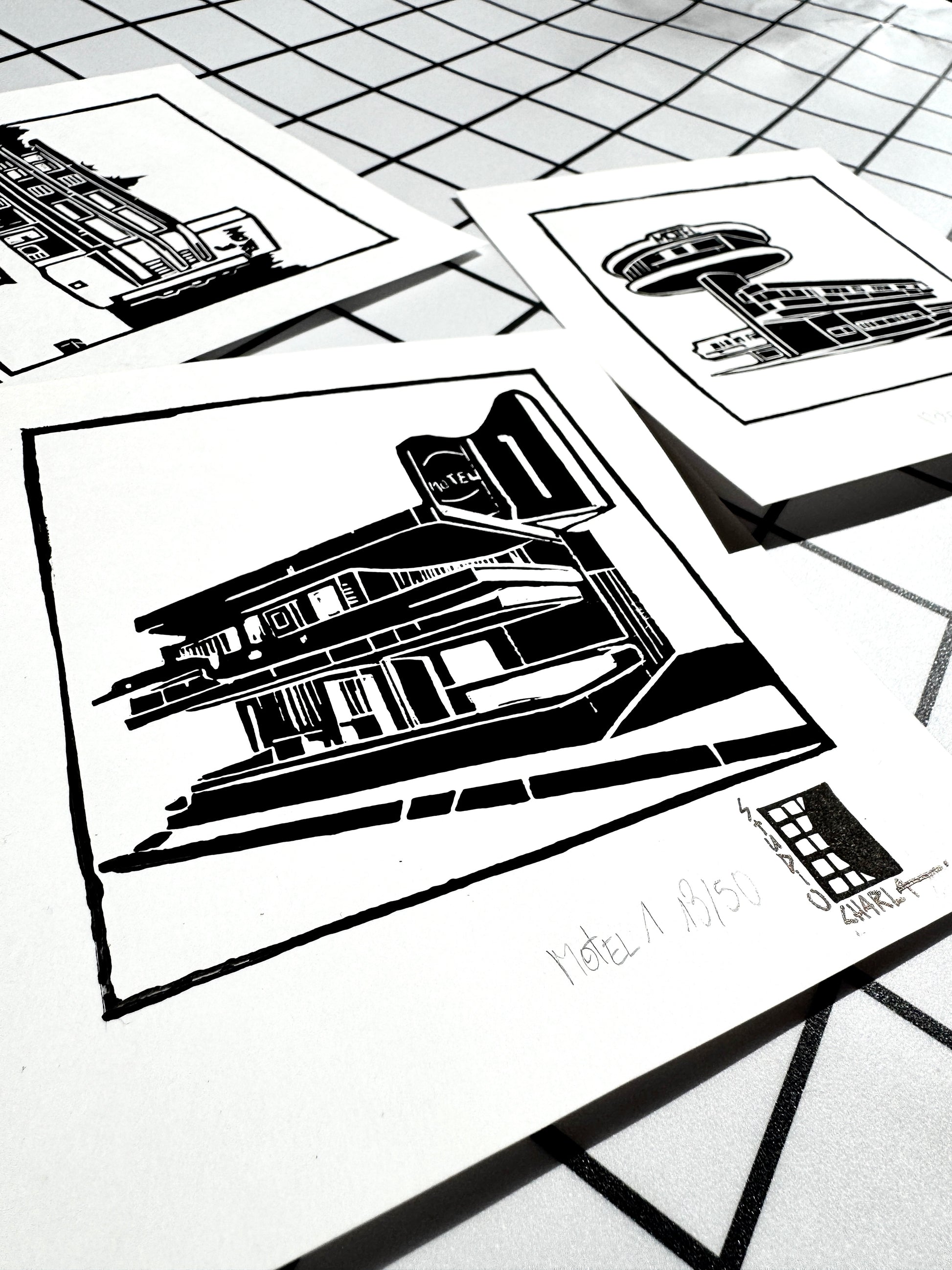 Linogravure, encre noire sur papier lavis, 14.5 sur 15.5cm