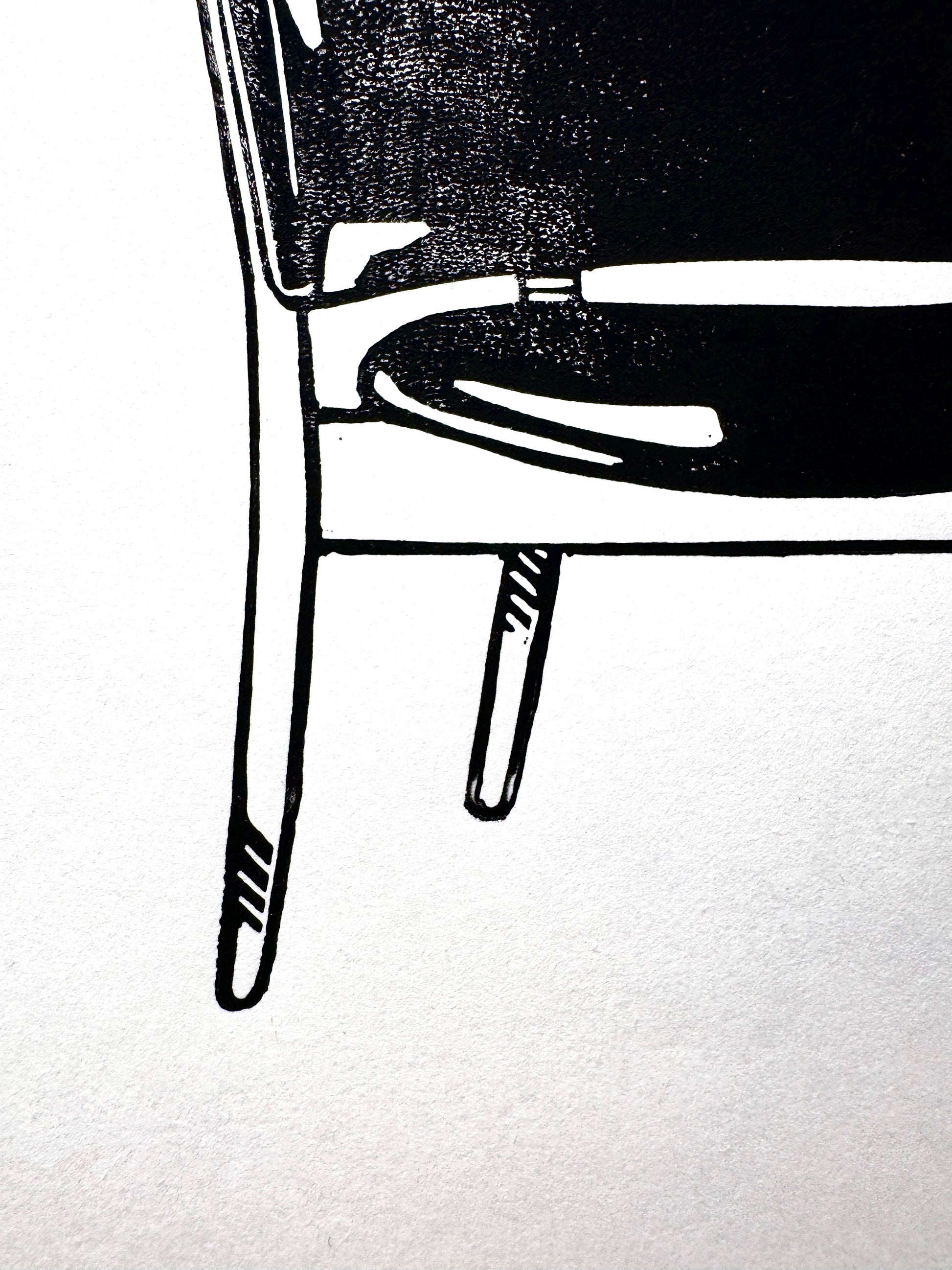 Nous imprimons nos linogravures manuellement à l’aide d’une presse. Cette technique révèle les imperfections naturelles, ces petites variations qui rendent chaque tirage unique et inimitable, loin de la déco de masse et sa production industrielle.